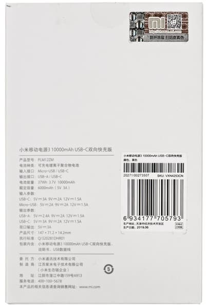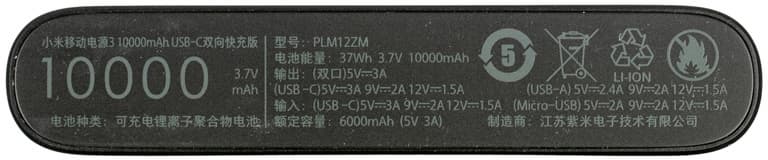 Mi Power Bank 3 10000 (PLM12ZM) — аппарат с вполне современным набором поддерживаемых режимов и технологий, включая Quick Charge и Power Delivery, причем как для выходов, так и для входов. Входов два — широко распространенный Micro-USB, а также Type-C, который может быть и выходом.