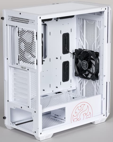В корпусе предусмотрена возможность установки вентиляторов типоразмера 120 и 140 мм. Посадочные места для них имеются спереди, сверху и сзади.