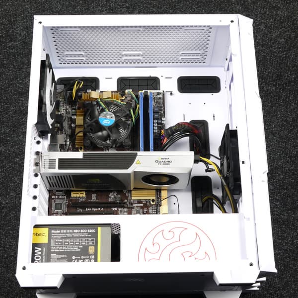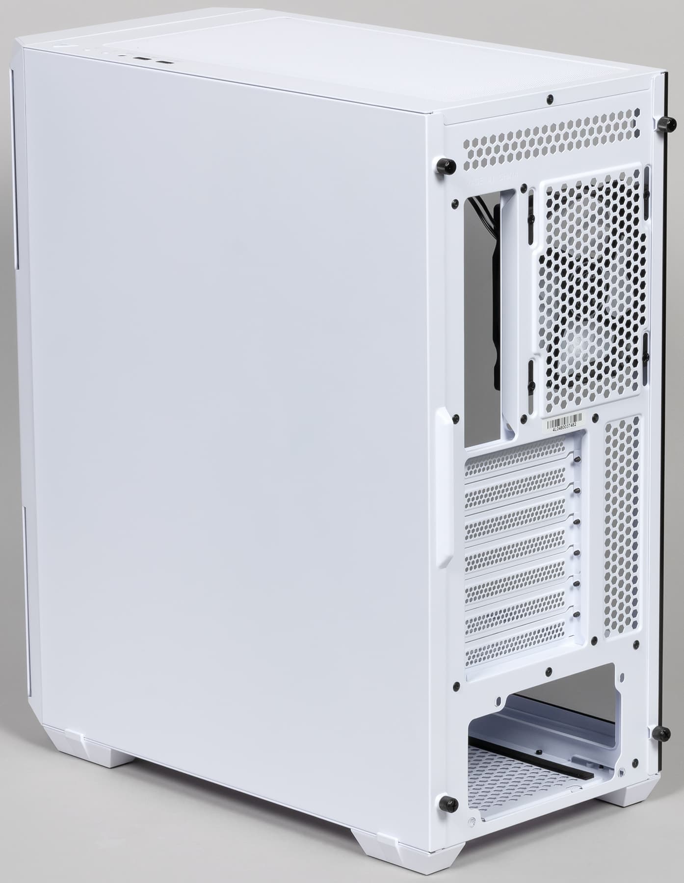 Корпус представляет собой решение башенного типа с вертикально размещаемой платой формата ATX (и менее габаритной) и горизонтальным расположением блока питания снизу. Кожух закрывает место установки блока питания со стороны левой стенки, придавая внутреннему виду корпуса аккуратность и законченность. Также кожух исполняет роль своеобразного элемента жесткости, который обеспечивает дополнительную фиксацию основания для системной платы с нижней стороны. Посадочные места для накопителей с внешним доступом в корпусе полностью отсутствуют. Так что компоновка вполне типовая для современных решений, без каких-либо заметных особенностей, но стоит отметить, что шасси относительно короткое — всего около 370 мм, если не считать винты.
