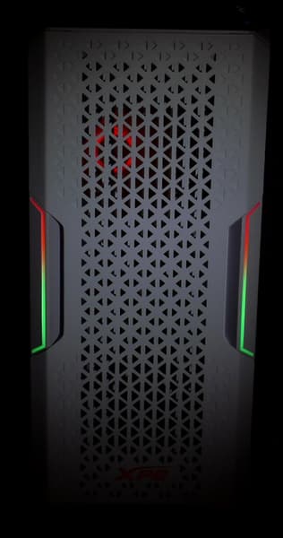 В корпусе предустановлено два вентилятора: один XPG Vento 120 ARGB (1300 об/мин) сзади и один XPG Vento 120 (1300 об/мин) спереди. Оба вентилятора, как следует из их названия, имеют типоразмер 120 мм. Вентиляторы явно не самые дешевые, о чем говорит хотя бы наличие виброизолирующих накладок на их корпусах.