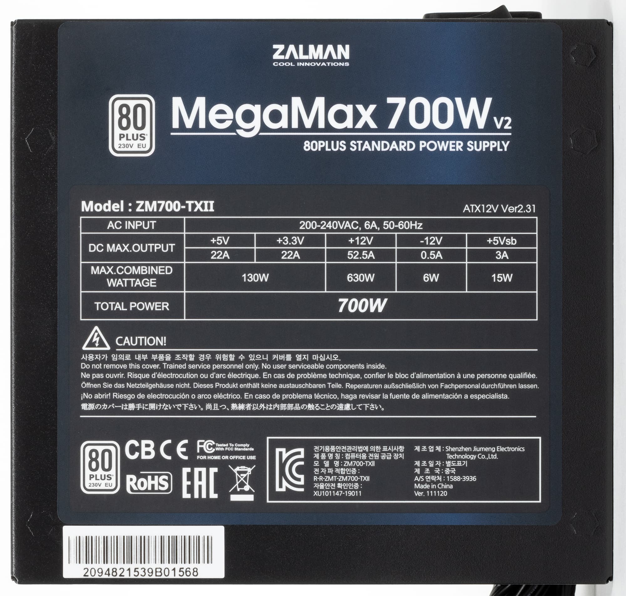 MegaMax — серия бюджетных блоков питания корейской компании Zalman, эти модели характеризуются лишь сертификатом 80+ Standard, но максимальная мощность БП этой серии немалая: 800 Вт. В этот раз мы познакомимся с обновленной версией почти старшей модели: ZM700-TXIIv2.
