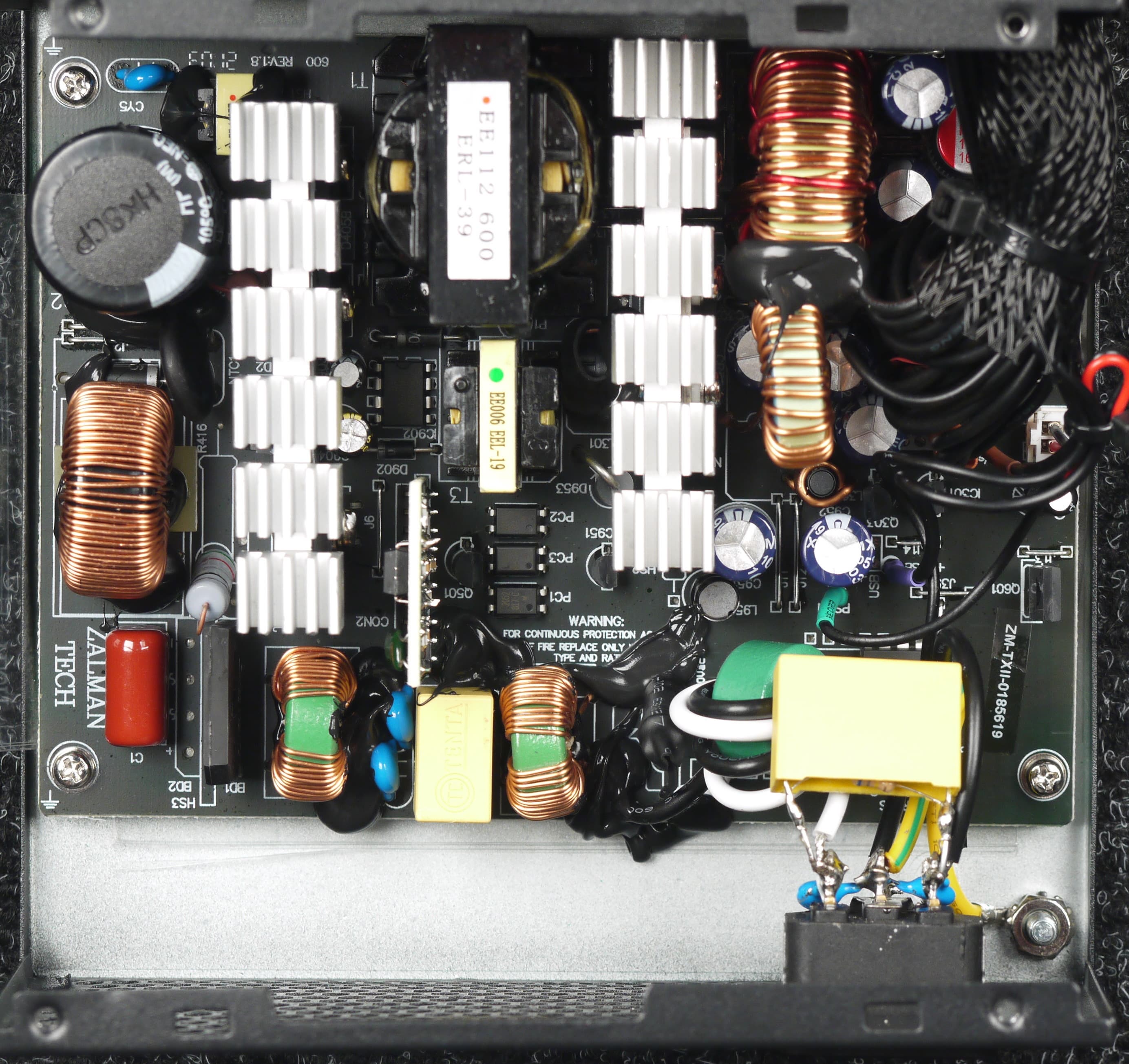Все низковольтные конденсаторы в блоке питания представлены продукцией под торговой маркой Asia’x серий TMX и TNX.
