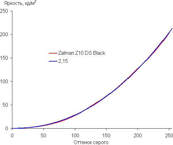 Аппроксимация полученной гамма-кривой дала показатель 2,15, что лишь немного ниже стандартного значения 2,2, поэтому картинка имеет естественную светлоту. При этом реальная гамма-кривая мало отклоняется от аппроксимирующей степенной функции: