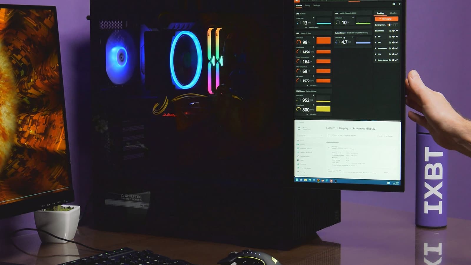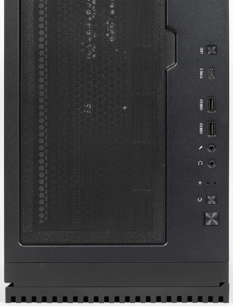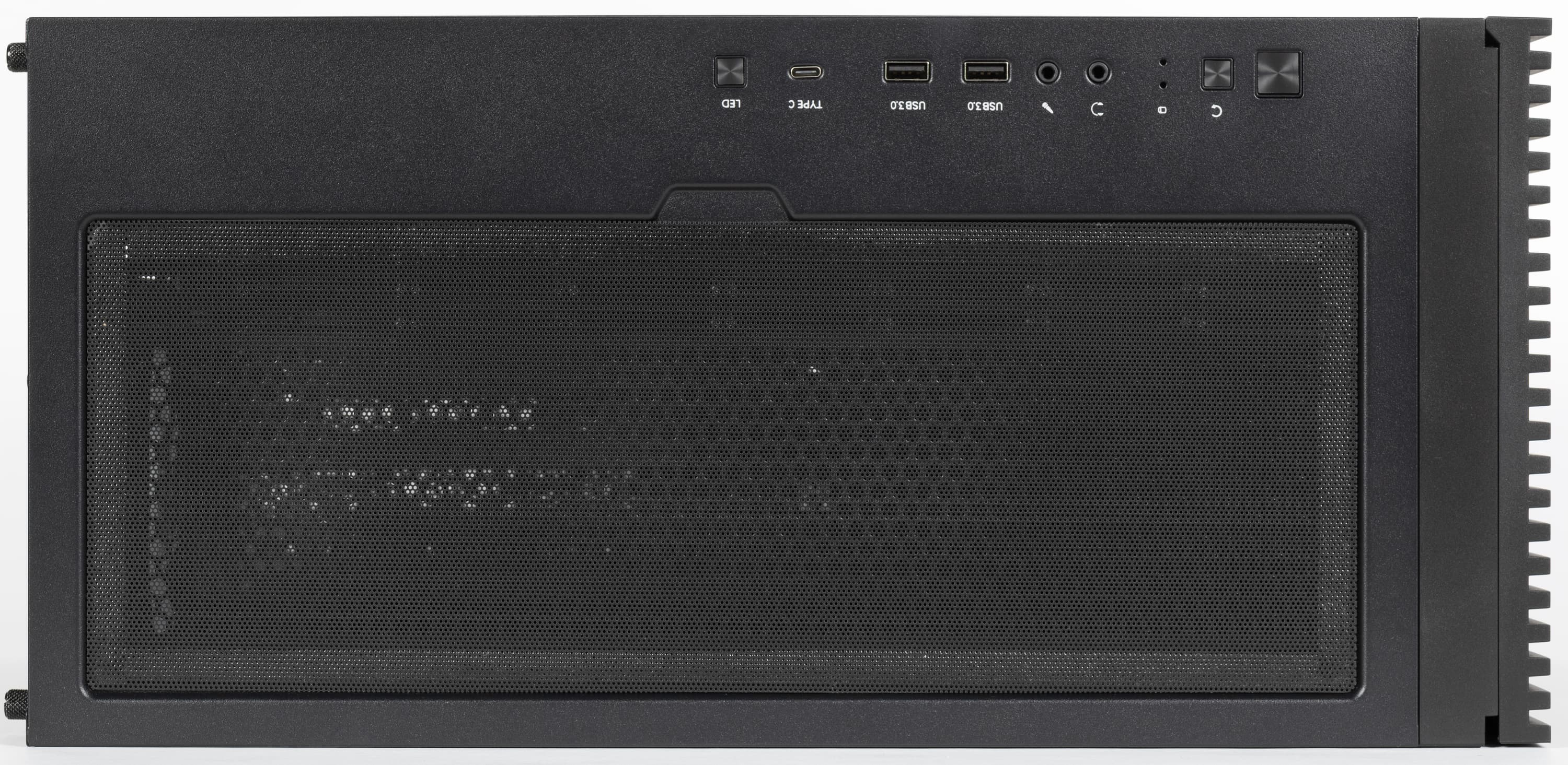 Если не учитывать экран и сравнивать с корпусами средней ценовой категории, то данная модель вполне типовая: поддерживает системные платы до ATX включительно и два варианта размещения видеокарт, имеет одну стеклянную боковую стенку, стандартный по нынешним меркам набор портов USB на панели управления — один Type-C и два Type-А, четыре места для накопителей, три штатных вентилятора, один из которых с подсветкой.