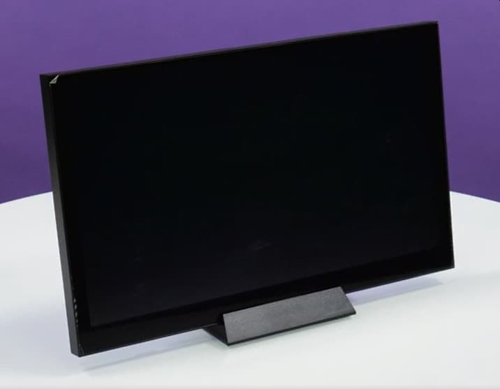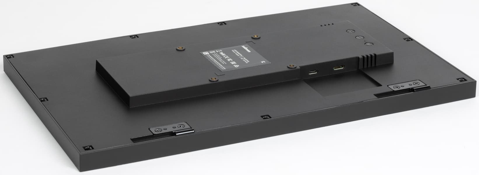 По понятным причинам при этом обязательным будет настольное размещение, но экран можно использовать и отдельно от корпуса, для чего имеется подставка, в которую его можно вставлять как горизонтально, так и вертикально, причем с небольшим наклоном назад. На ее нижней части имеются резиновые наклейки, предотвращающие скольжение по поверхности.