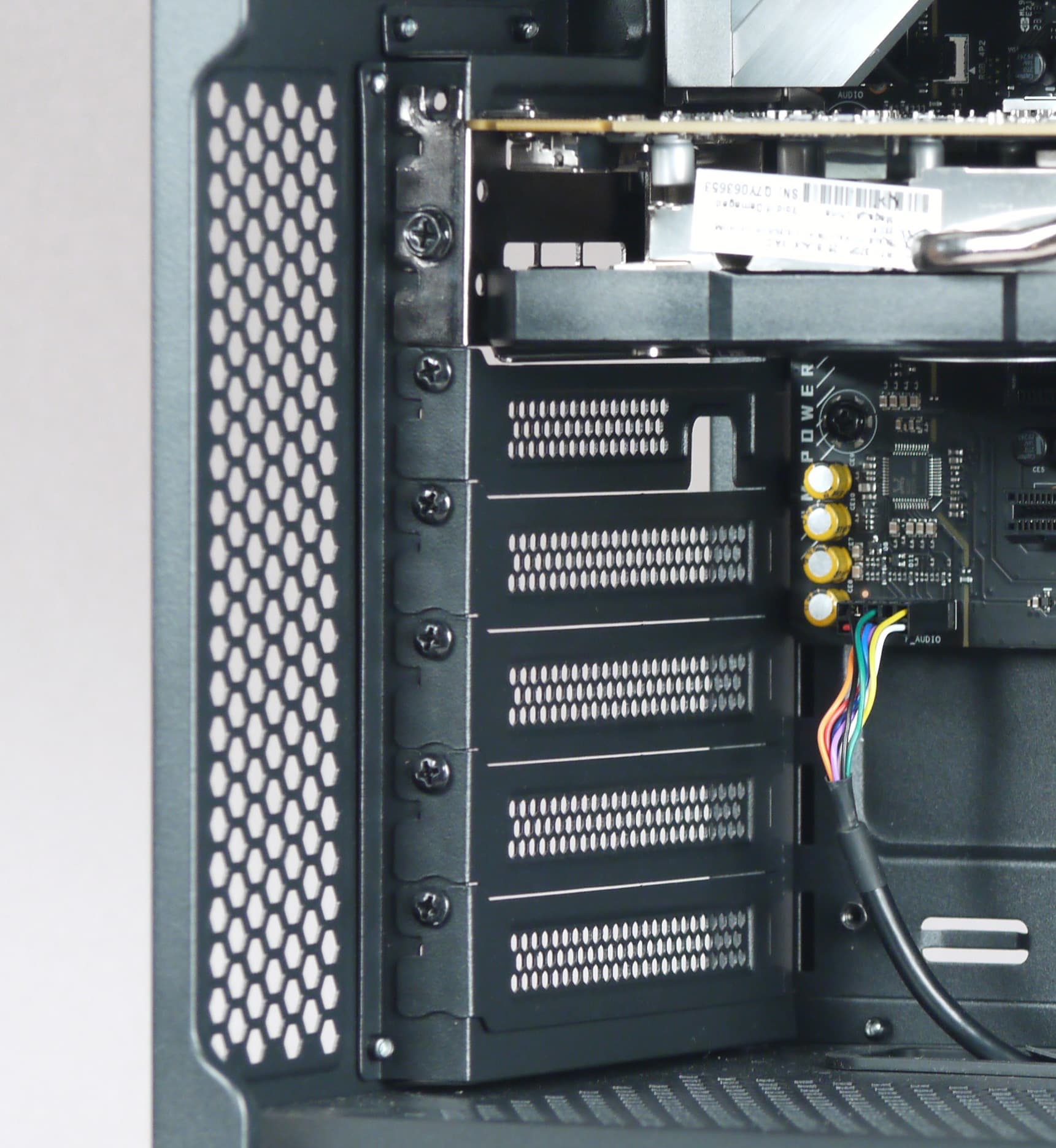 Как и в большинстве современных корпусов, для видеокарт возможны два способа установки — горизонтальный (непосредственно в слот расширения системной платы) и вертикальный (потребуется приобрести райзер).