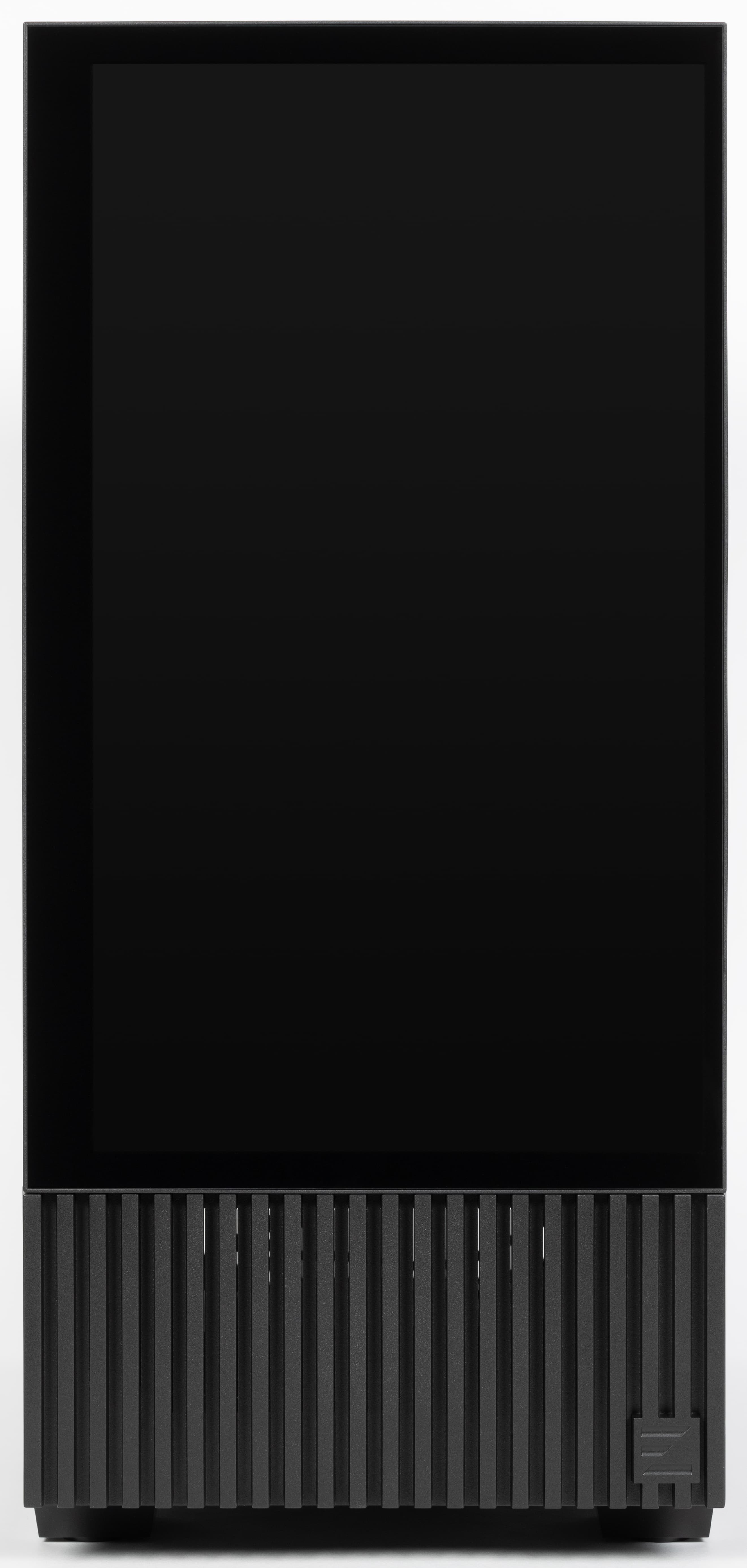 Теперь о необычном: для фронтальной части предусмотрены два варианта. При поставке бо́льшая ее часть закрыта пластиковой панелью-дверцей, закрепленной расположенными слева петлями — ее можно открыть движением справа налево, однако какой-либо иной функции, кроме чисто декоративной, у нее нет. В закрытом состоянии дверца фиксируется двумя сильными магнитами, но амортизирующих накладок не предусмотрено, поэтому при закрытии раздается громкий стук.