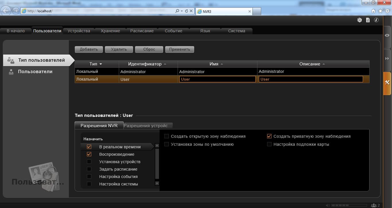 Настройки уровня доступа для различных пользователей реализованы достаточно гибко.