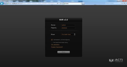 Клиентская же часть доступна двумя способами — подключение с помощью браузера по адресу, указанному в настройках серверной части, либо же с помощью программного обеспечения «ACTi NVR Workstation». Функционально эти оба способа практически идентичны, разница есть лишь в деталях, о которых мы сообщим немного ниже. Так или иначе, для подключения мы должны авторизоваться: