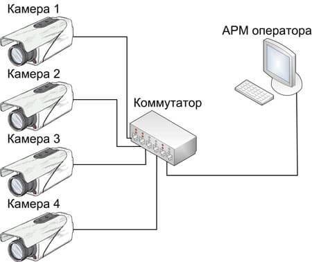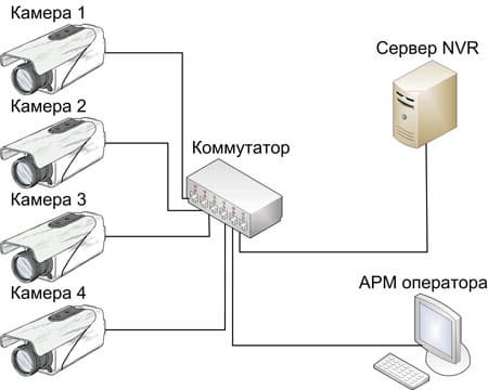 Для этой схемы характерна повышенная нагрузка на АРМ оператора (запись видео с нескольких камер, просмотр архива, обработка удаленных подключений), и, как следствие, высока вероятность технического сбоя. В нашем же случае возможна реализация несколько иной схемы: