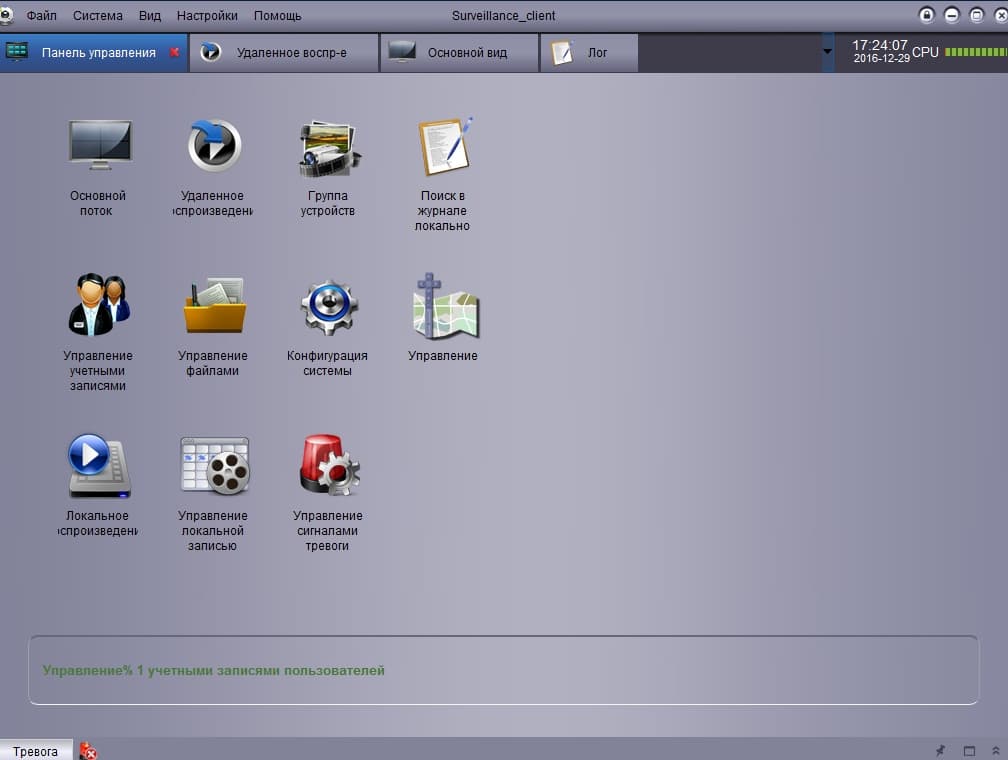 В ней вы можете собирать любые группы камер (в том числе и с разных регистраторов), просматривать живые трансляции и искать записи в архиве, управлять пользователями и их правами, записывать видео на локальные накопители (в том числе и по расписанию).