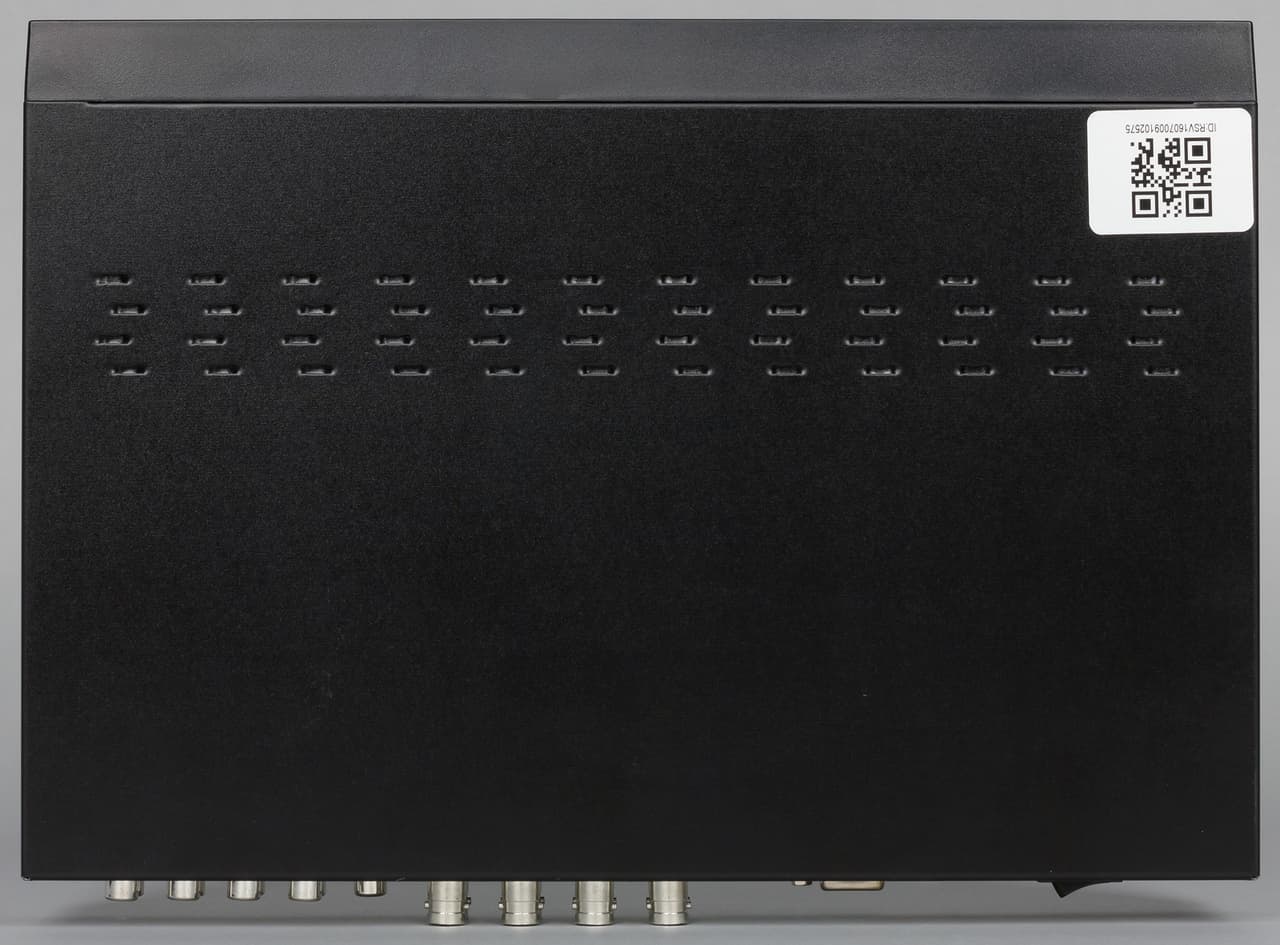 Рассматриваемая модель представляет собой гибридный видеорегистратор, поддерживающий как аналоговые камеры форматов AHD, HD-TVI, 960H, так и сетевые IP-камеры, работающие с кодеком H.264. Этот же кодек применяется и для записи видеофайлов с аналоговых источников. При использовании всех восьми аналоговых каналов допускается добавить к ним еще четыре IP-камеры. Если же аналоговые устройства не используются, то данное решение может обслужить двенадцать сетевых камер. Дополнительно предусмотрено восемь аналоговых входов для записи звука.