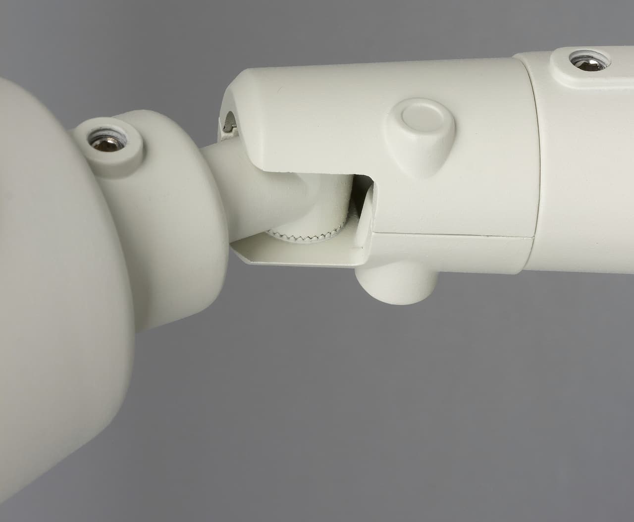 Устройство имеет традиционную конструкцию — из основного корпуса и модуля крепления. Все эти элементы изготовлены из металла. Для удобства настройки на месте установки предусмотрены три шарнира, которые закрепляются на винты с шестигранником.