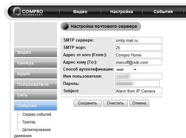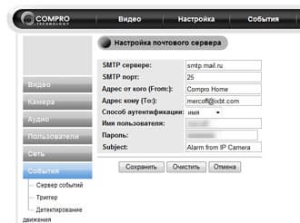 Теперь следует рассказать о тех самых действиях, на которые можно запрограммировать камеру. Итак, аппарат способен: в случае тревоги или в заданное время сделать снимок и переслать его по почте, «залить» на ftp-сервер или сервер изображений, а также отправить SMS с оповещением о тревоге. Настройка всех этих серверов требует минимальных познаний в данной сфере: