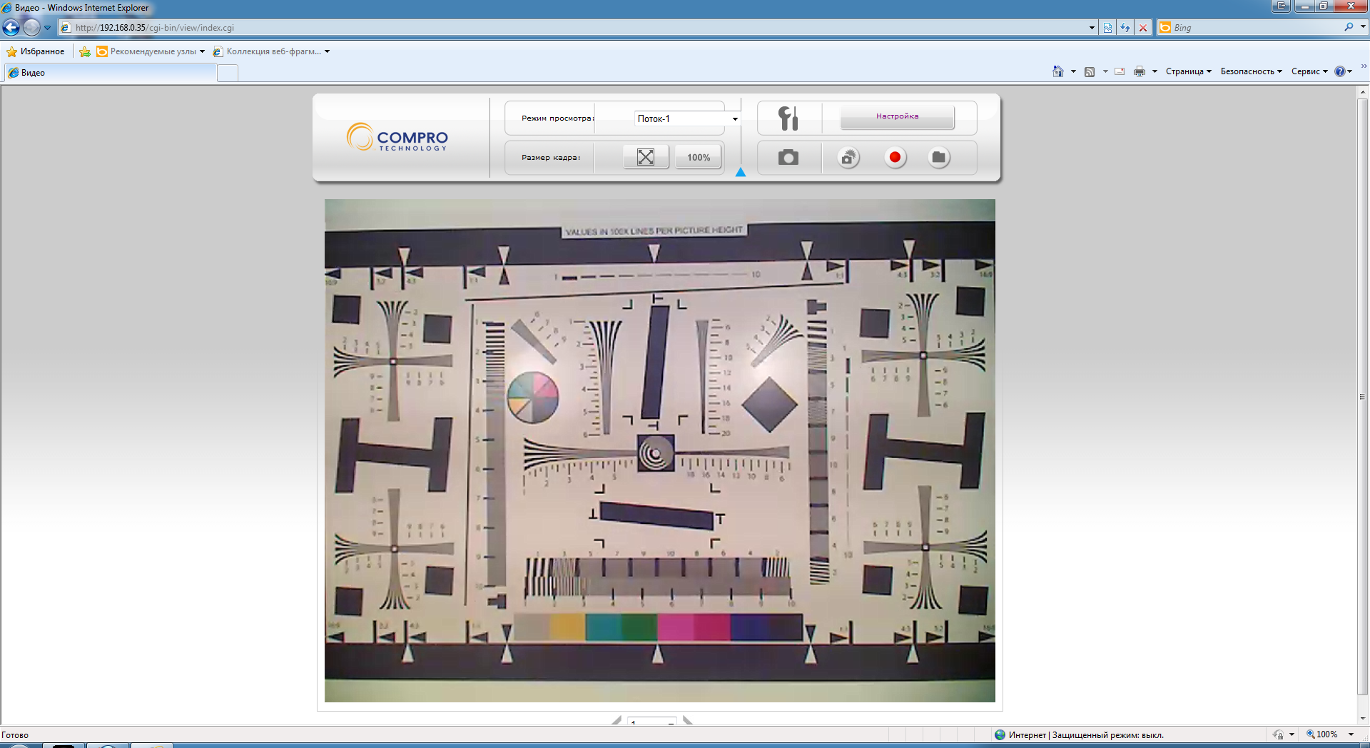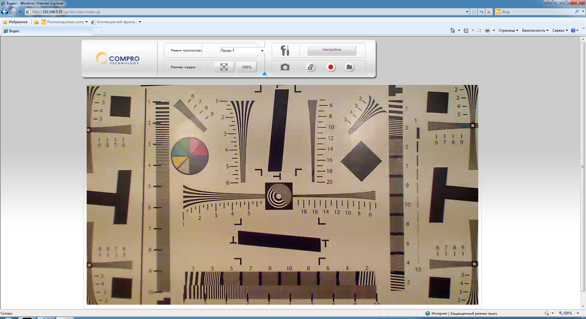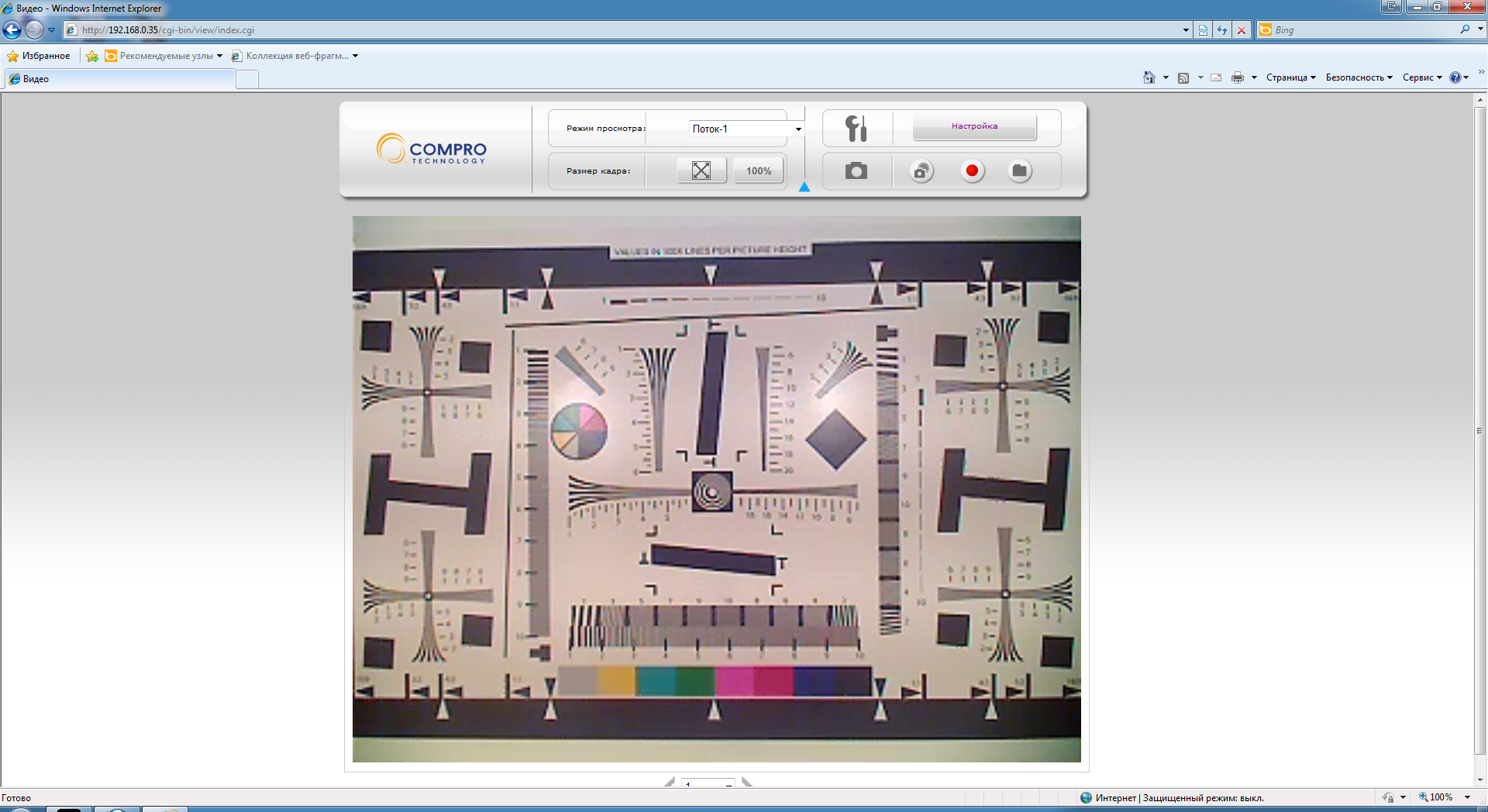 Что касается браузера — тут у нас возникли некоторые сложности. Подключение к аппарату легко осуществлялось в любом браузере, но видео с камеры можно было наблюдать только в Internet Explorer. Увы, нам так и не удалось «подружить» нашу камеру с иными браузерами, нужные надстройки хоть и устанавливались, но так и не заработали.