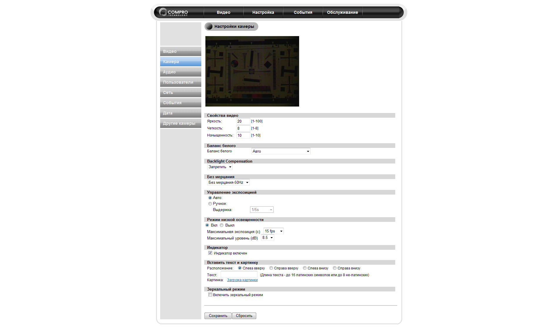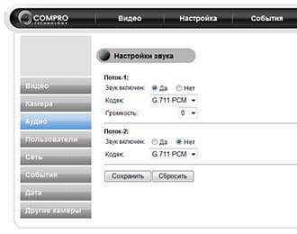 Видеостандарты | два кодека — M-JPEG и H.264 (MPEG4 Part 10) |