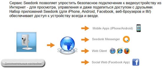Мобильным пользователям рекомендуется настроить камеру на этот Seedonk, поскольку он позволяет получить возможность просмотра и управления камерой с помощью приложений для iPhone, Android и т. п.