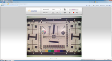 Мы не зря избегаем употреблять слово «разрешение». Многие пользователи не видят разницы между «размером кадра» и «разрешением». А она, эта разница, есть. Причём бывает просто громадной. Реальная разрешающая способность любой камеры редко соотносится с размером получаемого кадра. И если количество пикселей в снимке узнать проще простого, то разрешающую способность камеры увидишь только в особых условиях, при правильной съёмке специальных тестовых таблиц. Если судить по измерению, полученному в ходе съёмки одной такой таблицы, то разрешающая способность рассматриваемой камеры — не ниже 600 линий. Однако следует иметь в виду, что минимальная дистанция фокусировки аппарата составляет 0,5 метра, что затрудняет съёмку тестовой таблицы в уверенном фокусе. По этой причине мы и говорим — не ниже 600 линий. Данный результат примерно соответствует любительским видеокамерам Full HD начального ценового сегмента. Полноразмерный скриншот съёмки тестовой таблицы читатель может увидеть, щёлкнув по рисунку: