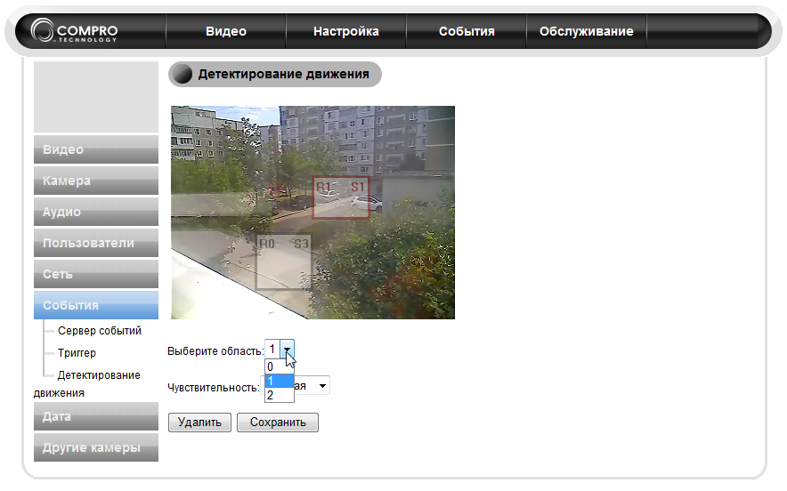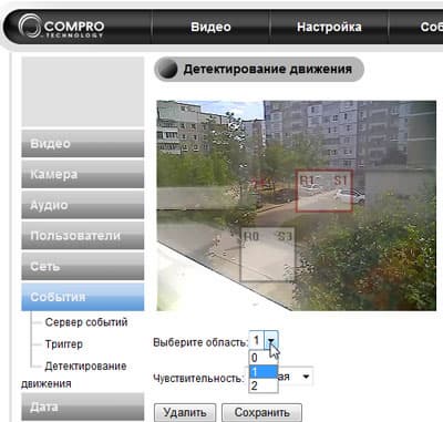 Каждая из созданных областей детектирования может иметь разную настройку чувствительности датчика движения. Теперь, после тщательного знакомства и «обкатки» камеры в полевых условиях, мы смело рекомендуем выбрать самую низкий уровень. Иначе имеется риск срабатывания датчика движения даже от такого мелкого фактора, как, например, быстрая смена освещённости.