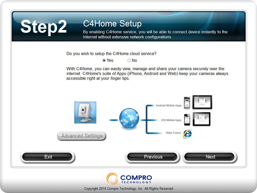 Такой способ настройки камеры предполагает ее эксплуатацию как самостоятельного объекта видеонаблюдения, который может оповещать о событиях через почту и другие средства связи. Вместе с этим, камера параллельно будет работать и с облачным сервисом C4Home.