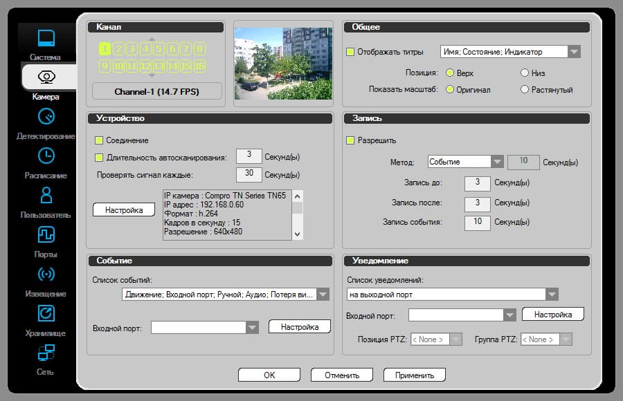 Настройки программы гораздо более глубоки, нежели имеющиеся в мобильном приложении или даже на веб-страничке самой камеры. Правильно, ведь здесь используются ресурсы не камеры, а ПК.
