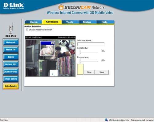 Достаточно простой в настройке, но, тем не менее, надежно срабатывающий, этот детектор движения отлично вписывается в функционал интернет-камеры. Кстати, настройка зон детекции также возможна.