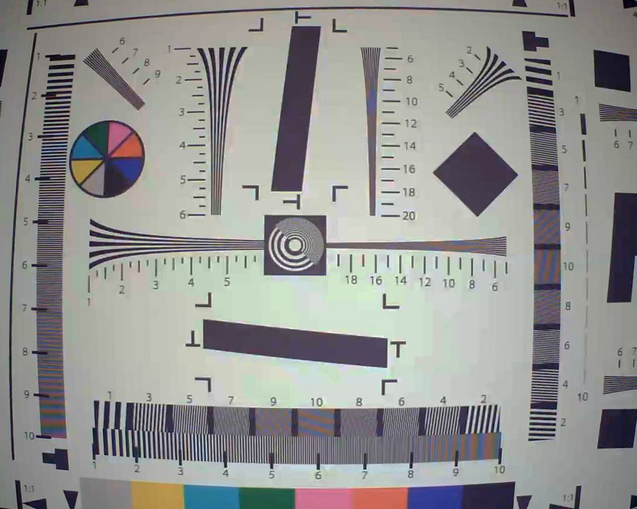 Сегодня, как и всегда ранее, мы тестируем камеру с помощью классической таблицы ISO12233. Эта таблица позволит нам оценить уровень геометрических искажений, вносимых оптической системой камеры, а также вертикальную и горизонтальную разрешающие способности. Конечно же, тестовые способности таблицы ISO12233 намного шире. Но нам, для наших целей и задач, вполне достаточно оценить именно вышеупомянутые параметры. Итак, вот скриншот, полученный с тестовой камеры: