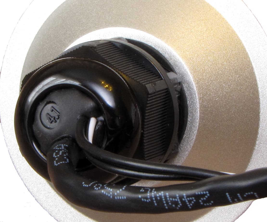 Место ввода кабелей в IP-камеру тщательно герметезировано. Конечно, пользователю оставлена возможность извлечь герметик и кабели — производитель предусмотрительно использовал шестигранную уплотнительную гайку, которую можно демонтировать, используя самый обычный гаечный ключ.