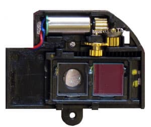 Выше, в технических характеристиках, мы указали наличие автоматического ИК-фильтра, необходимого для переключения камеры в ночной режим. Так вот на фото выше — он и есть. При недостаточном освещении (датчик освещения помните?) камера механически сдвигает ИК-фильтр таким образом, чтобы на CMOS-матрицу смогло попасть как можно большее количество света. При этом электроника камеры переводит изображение в черно-белый вид, тем самым полностью подавляя цветовой шум с матрицы. Сие действие сопровождается акустическим эффектом в виде негромкого шуршания с последующим звонким щелчком (общая длительность звука — не более 0,5 секунды).