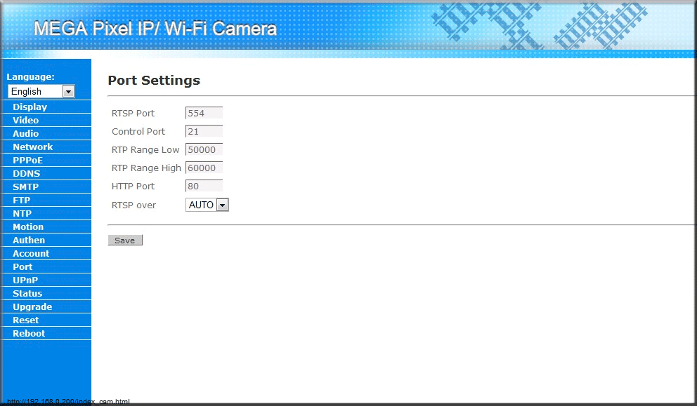 Отметим, что именно эти настройки мы меняли с помощью утилиты «IPCamSetup». Далее идет пункт «PPPoE», позволяющий установить соединение с провайдером; пункт «DDNS», позволяющий подключаться к IP-камере используя только лишь ее имя (при этом неважно, какой будет у нее IP-адрес); «SMTP», предоставляющий возможность отправки уведомления о тревоге на указанный e-mail; «FTP», позволяющий выгружать тревожные фотографии на указанный в настройках FTP-сервер.