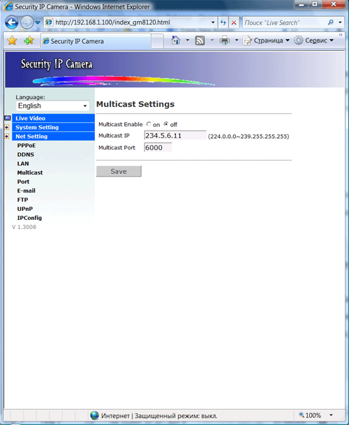 Кстати сказать, эта ip-видеокамера может выполнять не только роль охранного оборудования – благодаря наличию пункта Multicast возможна трансляция видеосигнала на заданную подсеть: