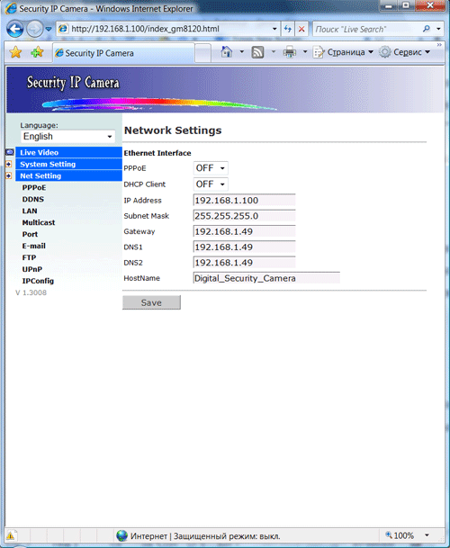 Видно, что устройство поддерживает такие технологии связи, как PPPoE и DDNS, причем последняя является удобнейшей штукой – даже при смене ip-адреса вы всегда сможете «достучаться» до ip-видеокамеры по ее имени. Здесь же, в этом меню, можно определить основные сетевые настройки: