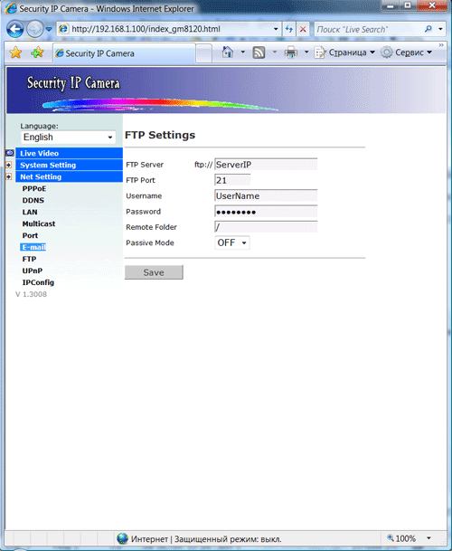 Немного выше мы рассмотрели встроенный детектор движения, который позволяет отправлять моментальные снимки объекта охраны на адрес электронной почты или FTP-сервер. Так вот, именно в этом же меню (а именно в пунктах E-mail и FTP) мы и определяем, куда именно будет отсылаться информация: