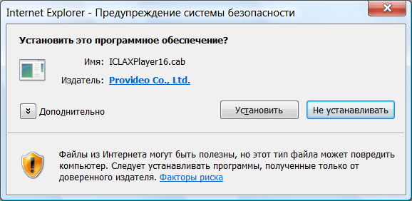 В этой части обзора мы рассмотрим внутренний веб-сервер, встроенный в предоставленные на тестирование IP-видеокамеры. Веб-сервер может выполнять несколько ролей – это и первоначальная настройка ip-видеокамеры, и работа в режиме самостоятельной (автономной) системы видеонаблюдения. При первом подключении используем адрес, указанный заводом-изготовителем, а именно 192.168.0.100. И сразу же нам предложат ввести имя и пароль пользователя для входа. В дальнейшем их, конечно же, можно будет изменить, а пока что введем «умолчальные» имя и пароль(admin). И сразу же, после ввода пароля, веб-сервер предложит нам скачать и установить некое программное обеспечение:
