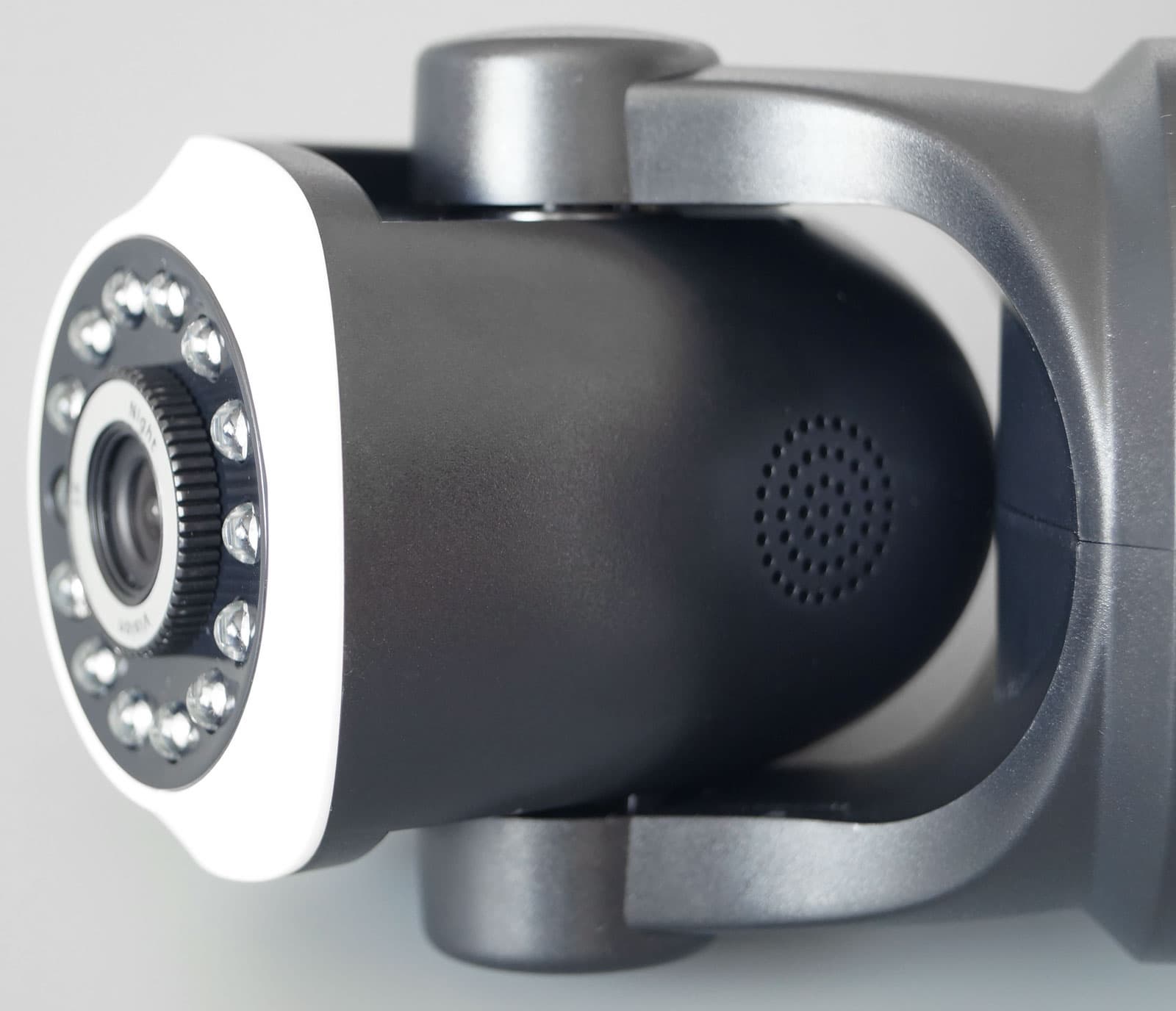 Теперь — изюминка. За указанную незначительную сумму мы получили не просто камеру, но камеру поворотную. Причем конструкция подвеса позволяет охватить взглядом 355 градусов по горизонтали и около 60 градусов по вертикали.