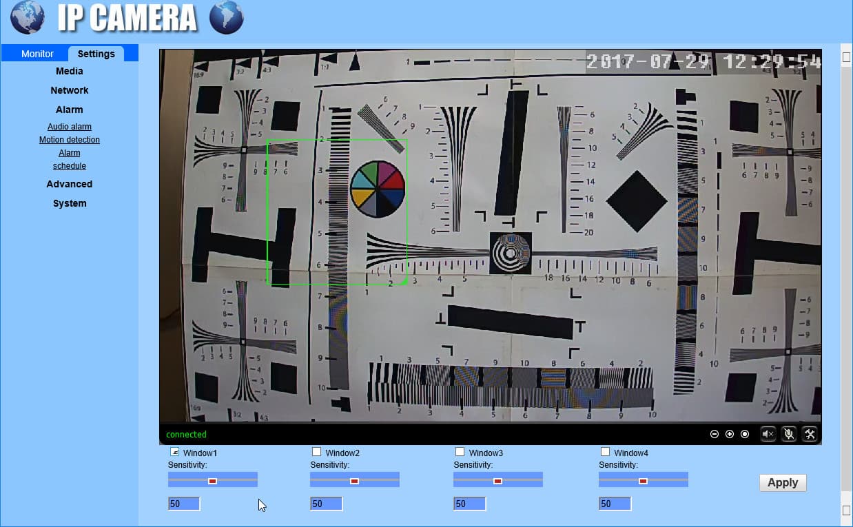 Думается, приведенных настроек с головой хватит для любого применения, для любой ситуации. За исключением узкопрофессиональной ниши, разумеется. Да, здесь нет таких возможностей, как, например, обнаружение объекта, долгое время остающегося неподвижным (забытая сумка). Здесь нет отрисовки траектории движения. Нет и патрульного режима, при активации которого камера должна автоматически поворачиваться в заданных направлениях с заданными интервалами.