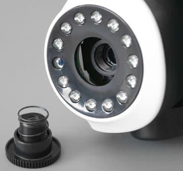 Внешний вид таких потребительских камер всегда разный, но конструкция и расположение основных «агрегатов», как правило, повторяется: инфракрасные светодиоды для «ночного зрения» окружают объектив, выше над объективом расположен датчик освещенности. Объектив может иметь как фиксированную конструкцию, так и давать возможность изменения фокусировки вручную либо с помощью встроенных приводов (но это уже в дорогих моделях). Задняя панель основания содержит служебные разъемы и интерфейсы. В нашем случае в их состав входит LAN-порт (он нужен лишь для подключения в «радиозашумленном» месте либо при отсутствии надежного Wi-Fi покрытия), разъем для карты памяти формата micro SD/SDHC, которая используется для локальной записи и хранения снимков и видеороликов, а также вход питания. Отдельные модели могут быть снабжены еще и цифровыми тревожными входами для подключения внешних датчиков, но в нашем домашнем случае они не нужны — зачем переплачивать? — поэтому модель была подобрана без таких входов (на их месте стоит пластиковая заглушка).