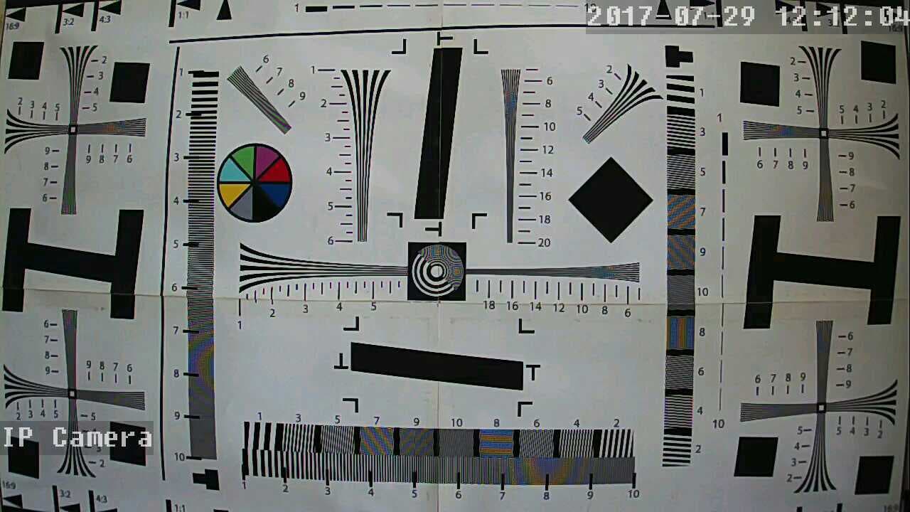 Разрешающая способность рассматриваемой камеры не может быть заметно высокой даже по определению: размер кадра в нашем аппарате слишком невелик, всего лишь HD (1280×720). Камера считается хорошей, если ее разрешающая способность в ТВ-линиях достигает половины ширины кадра в пикселях. Например, Full HD камера считается вполне приличной, если ее разрешающая способность достигает 900-1000 ТВ-линий по горизонтальной стороне кадра (1920 точек). Следовательно, если придерживаться такого правила, хотелось бы надеяться, что наша камера даст хотя бы 500-600 ТВ-линий.