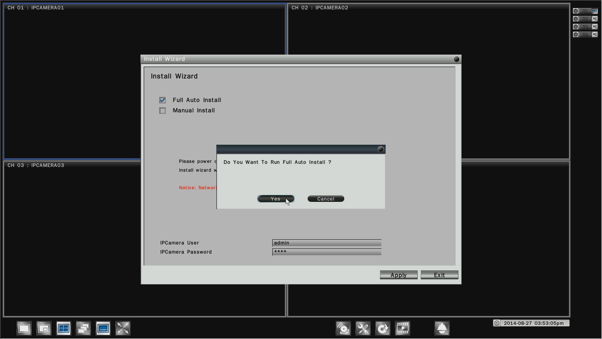 Вкратце рассмотрим настройки регистратора — их количество и «качество» могут о многом рассказать. Первое и важнейшее — без сомнения, настройка камер. Здесь-то мы и видим, что данное оборудование может (и должно) эксплуатироваться неспециалистами: об этом говорит наличие полностью автоматического режима первоначальной настройки — так называемый Plug'n'Play.