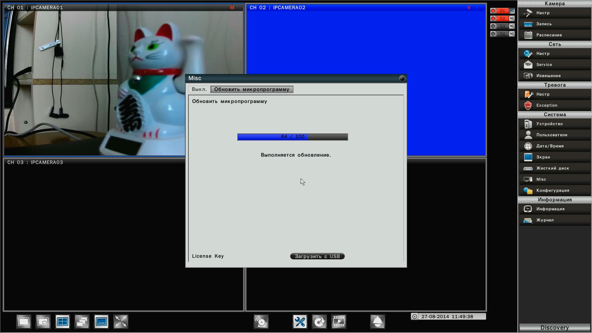 Кстати, о прошивке. В первую очередь мы проверили наличие новой версии на страничке продукта — оказалось, имеется. Обновление видеорегистратора производится с флэшки, весь процесс занимает несколько минут.