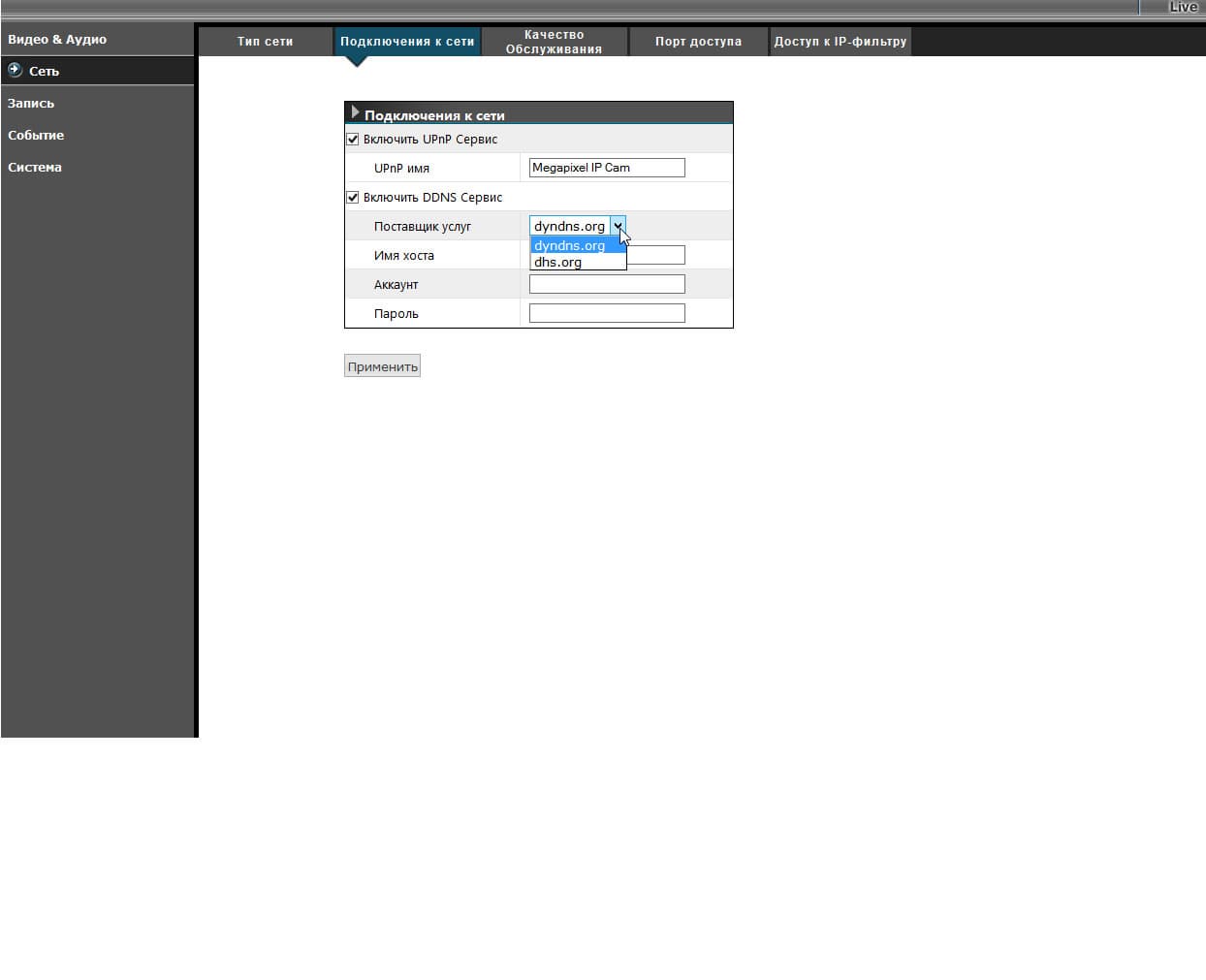 Вместо этого бесполезного занятия имеет смысл обратить внимание на важнейшие параметры самого регистратора. Например, такой параметр, который позволит управлять регистратором удаленно, через Интернет, в случаях, когда IP-адрес пользователя регулярно меняется. Для таких случаев в аппарате имеется поддержка трех ресурсов, предоставляющих динамические DNS: Dyndns, 3322, и NO-IP. Разумеется, для того, чтобы воспользоваться услугами этих сервисов, требуется наличие учетной записи в них. А это, увы, не всегда бесплатная услуга. Но безопасность всё равно дороже.