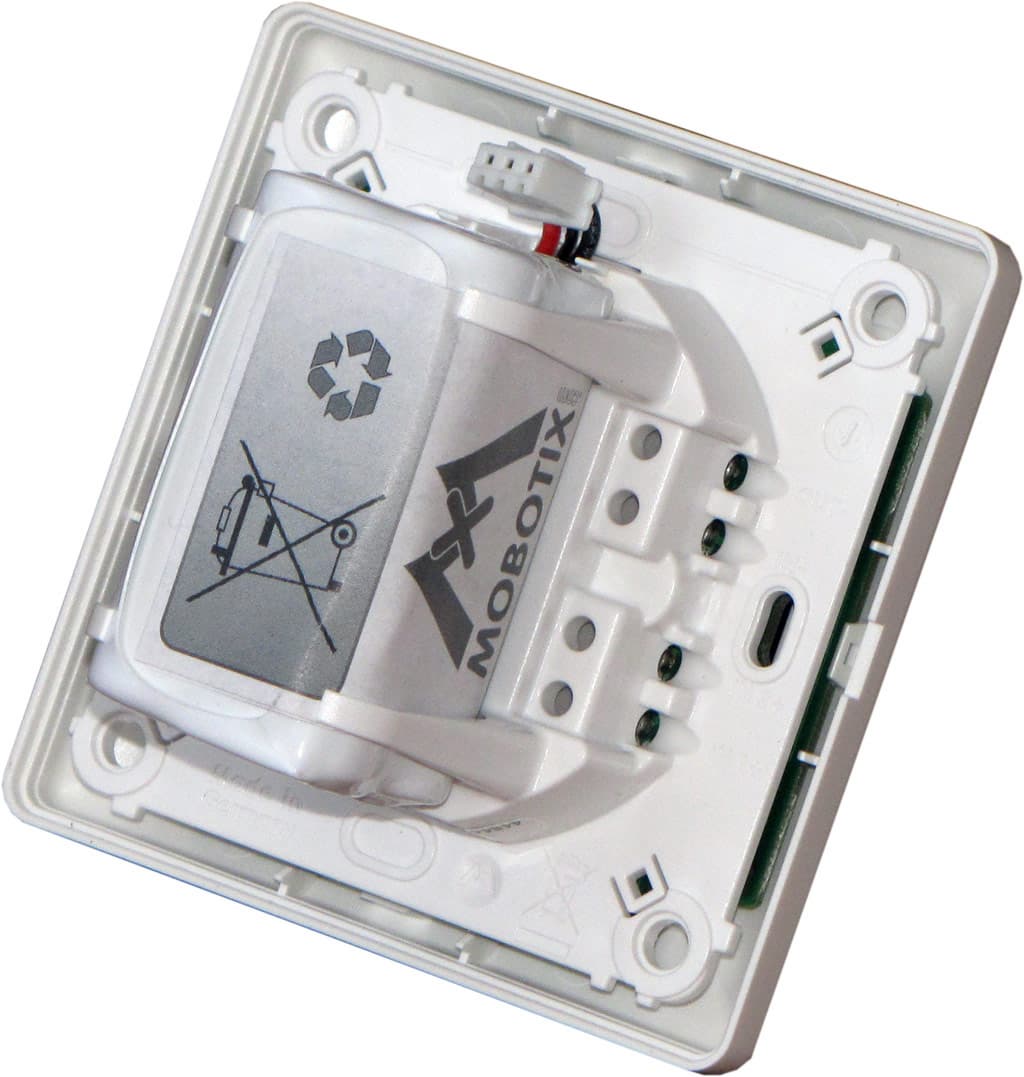 Основное назначение этого модуля — информационное оповещение. На экран с LED-подсветкой вы можете поместить информацию с номером дома, фамилией абонента или любую другую информацию на ваш выбор. Также существует и модификация этого модуля под названием «MX2Wire», которая позволяет организовать передачу аудио- и видеопотока по Ethernet, а также питания на домофон с помощью двухпроводной линии. Внешне он выглядит точно так же, но в этом случае в базовый комплект Mobotix T24 Starter Kit добавляется еще один модуль, назначение которого — «упаковать» в двухпроводную линию и данные, и питание: