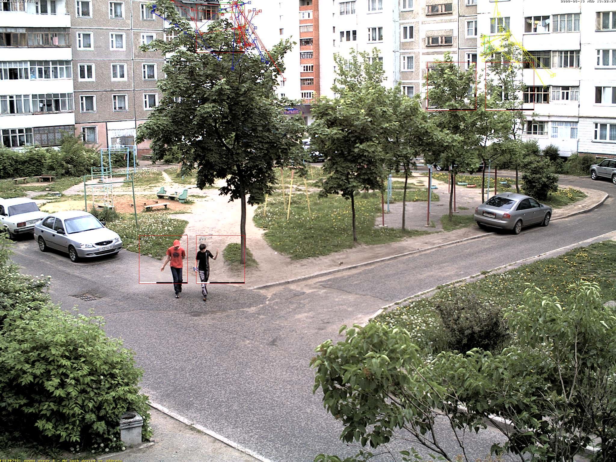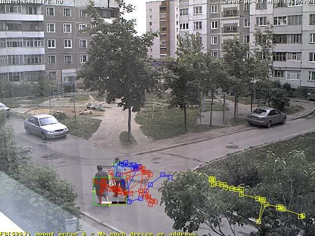 Не менее интересно организована запись траектории движения объекта, нарушившего спокойствие. И не одного объекта, а неограниченного количества правда, мешанина в таком случае получится изрядная. На рисунке можно проследить направление, откуда появились две фигуры, а желтым цветом отмечен путь объекта, скрывшегося за границы кадра.