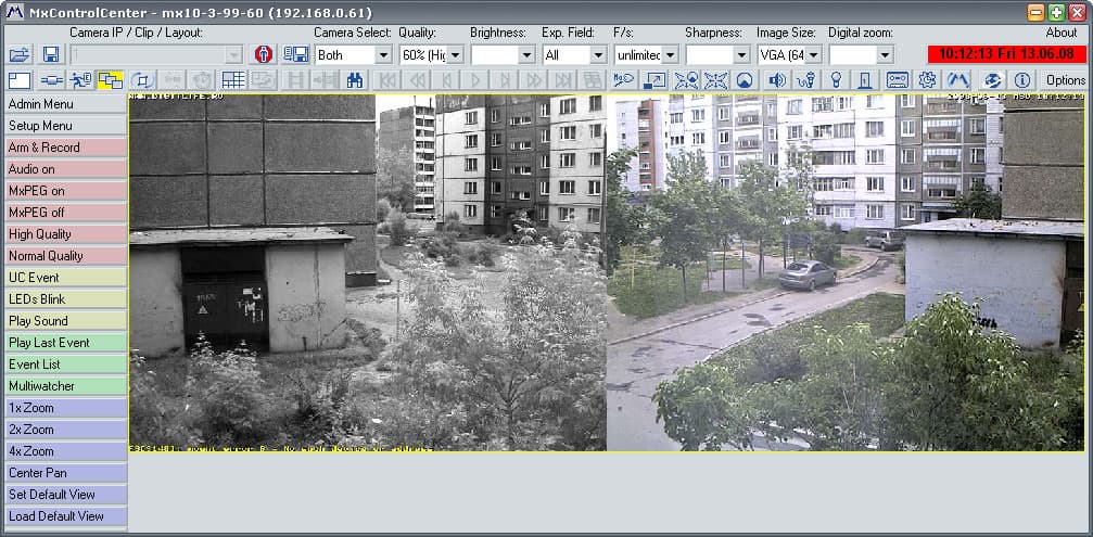 Но все-таки гораздо удобнее пользоваться созданной специально для камер семейства MOBOTIX программой MXControlCenter. Здесь легко можно уместить сколько угодно камер, все они автоматически смасштабируются по размеру главного окна программы.