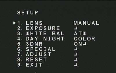 Следующим пунктом в главном меню идет «White Balance», он же — баланс белого. Может принимать значения «Manual» (появляется возможность вручную указать соотношение синего и красного цветов), «ATW» (автоматическая настройка баланса белого), «AWB» (автоматическое слежение за балансом белого).