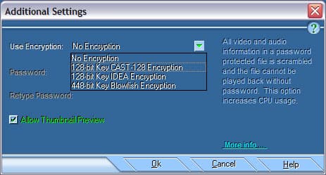 - Возможность сохранения видеоряда на выбор в один из трех форматов файла: формат фирмы-разработчика ПО (.awlive), в контейнер .avi или .mpeg., причем в случае выбора формата файла от разработчика возможно применение нескольких (на выбор) методов шифрования записываемой информации: