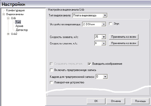 Кроме того, производитель заявляет о поддержке ряда устройств, предназначенных для удаленного управления видеокамерой, то есть, например, устройством поворота видеокамер. Основные настройки программы вы можете увидеть далее: