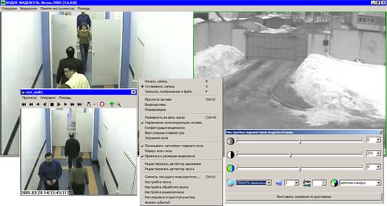 - Возможность независимой регулировки таких параметров каждой видеокамеры, как яркость, контрастность, насыщенность, чувствительность детектора движения, возможность задания нескольких зон детекции;