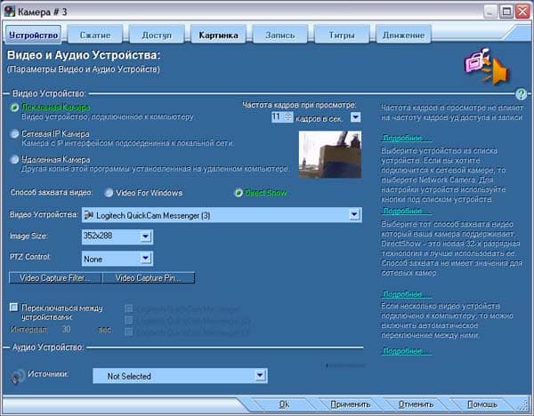 - поддержка USB-, DV-видеокамер при условии поддержки драйверами интерфейса DirectShow;