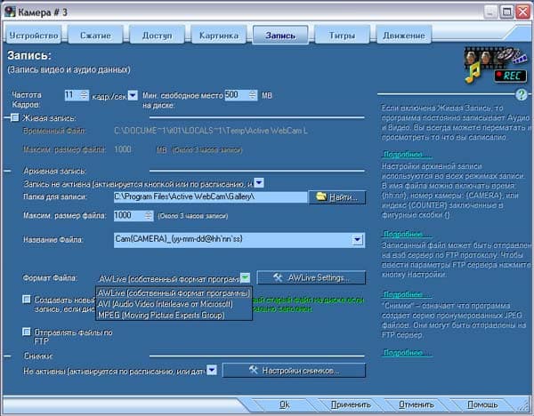- ПО Active Webcam создает и сохраняет снимки в определенной пользователем сетевой папке.